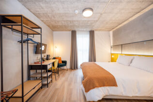 Our Mustard rooms are made for homely comfort with functional style. Make yourself at home and sleep comfortably on a memory foam double bed, enjoy a Netflix series on the 32 inch TV and pamper yourself with our 100% Egyptian cotton towels and delicately perfumed personal care accessories. All this in a temperature controlled room that you control.